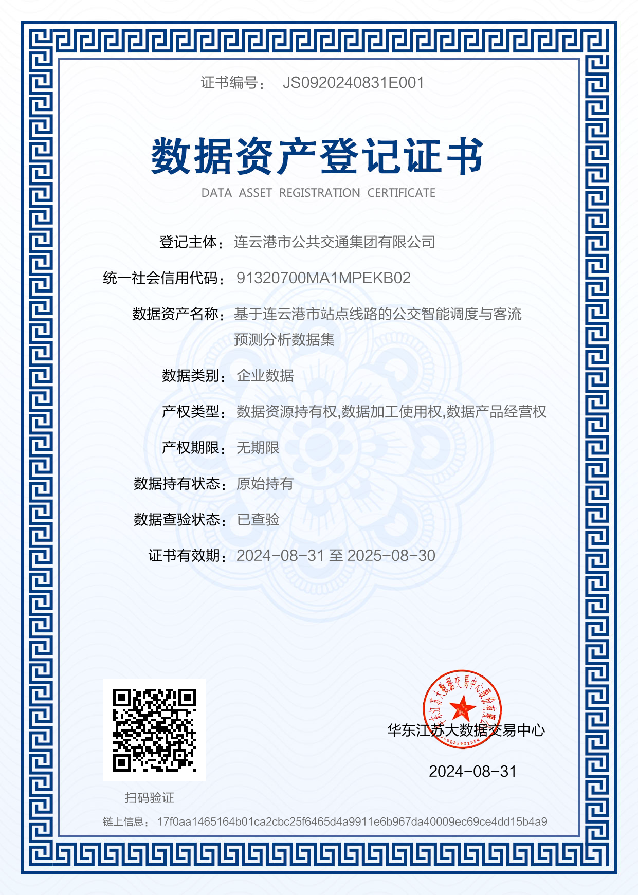 隨著(zhù)數據資產(chǎn)確認政策的正式落地,在連云港市國資委、市交通控股集團有限公司的共同指導下,連云港市公共交通集團有限公司先行先試、勇于探索,成功實(shí)現了連云港市首個(gè)數據資產(chǎn)價(jià)值化全流程項目的落地,這標志著(zhù)連云港市公交集團在數據資產(chǎn)化領(lǐng)域的先行一步,更為全市國有企業(yè)在數字資產(chǎn)化以及數字化轉型的道路上樹(shù)立了新的標桿。