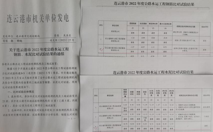2023年2月至4月,市交通運輸局組織開(kāi)展了全市公路水運試驗檢測機構及全市范圍內經(jīng)備案的工地試驗室鋼筋、水泥比對試驗,新絲路檢測公司認真準備,積極參加,最終取得所有參數均為“滿(mǎn)意”的成績(jì)。