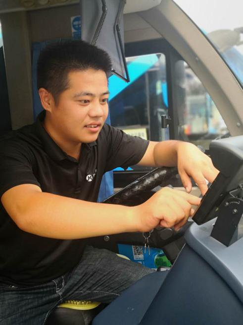 819日下午,市民卡公司兩位工作人員前往新華公交總站,對停在場(chǎng)站內的車(chē)輛進(jìn)行配置。連日的高溫天,車(chē)廂內的溫度高達40度,但他的工作熱情絲毫未減,兩人分工合作,逐輛車(chē)排查、給車(chē)載機配置新的服務(wù)器,接入到新的調度系統,截止夜晚,完成了場(chǎng)站內485輛車(chē)的配置工作。