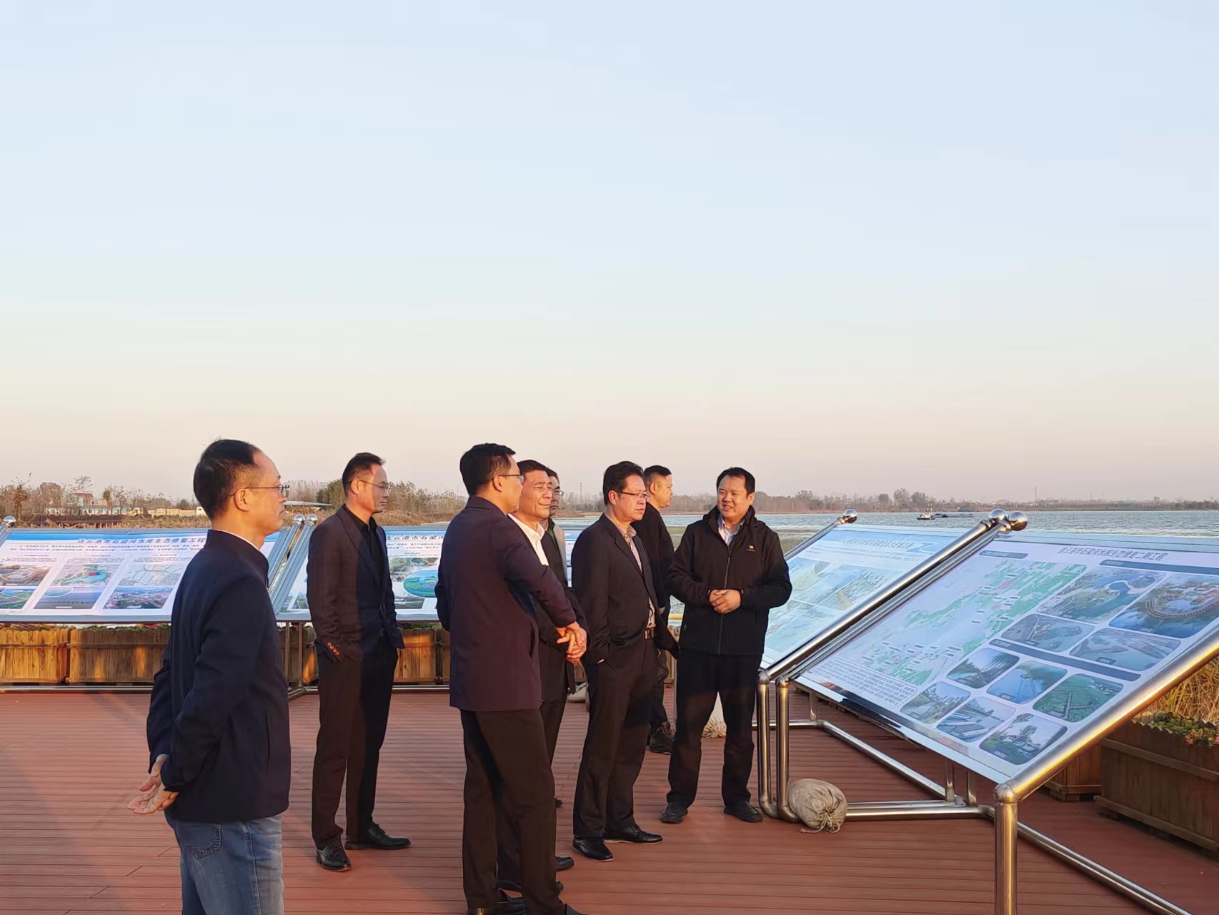 2023年11月8日丹陽(yáng)市人大一行到石梁河水庫生態(tài)修復工程漁人碼頭示范點(diǎn)觀(guān)摩調研石梁河水庫生態(tài)修復工程。贛榆區黨委及石梁河水庫生態(tài)修復工程建設處人員陪同調研。