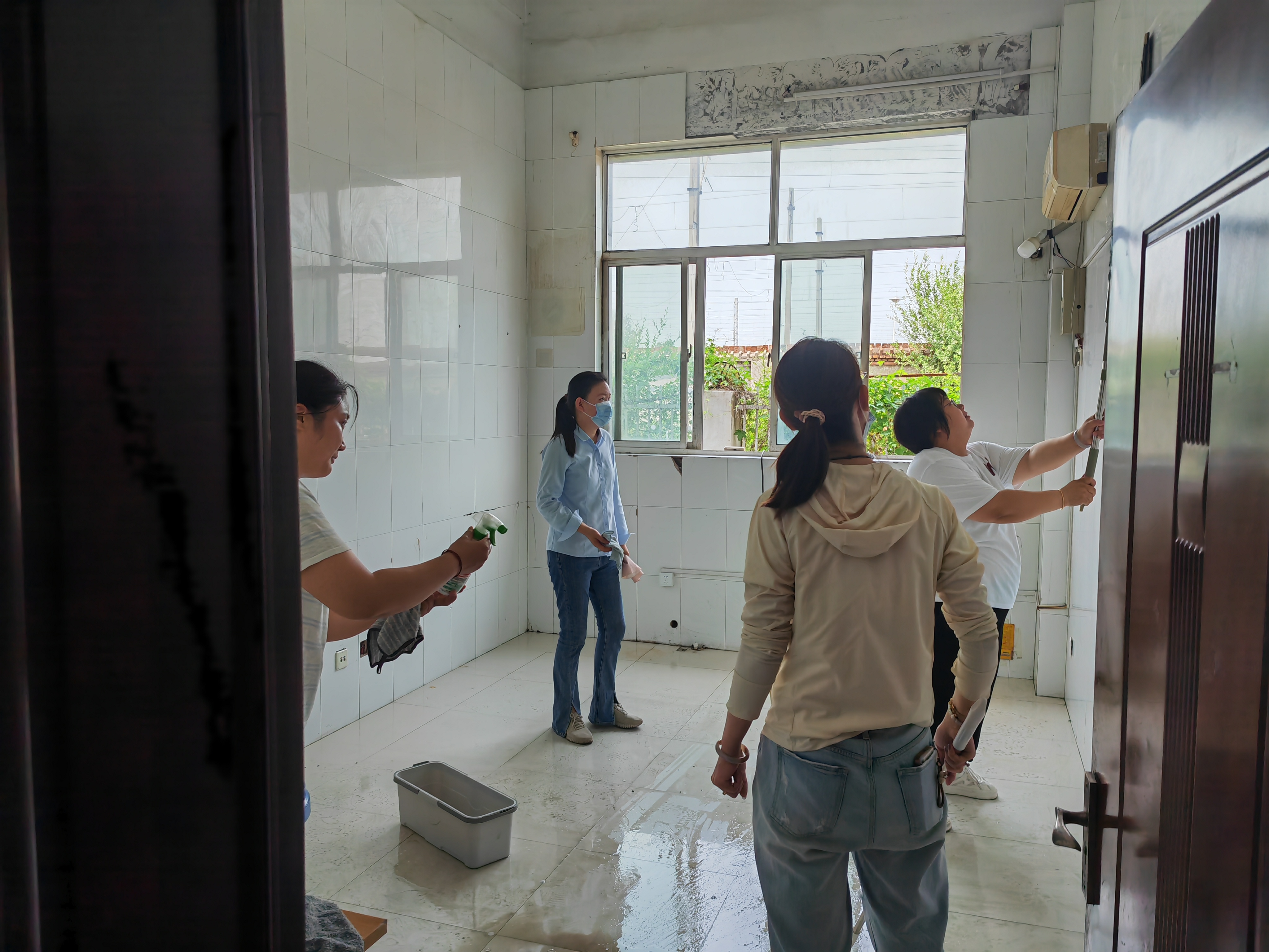 清理現場(chǎng),大家干勁十足。管理人員們不放過(guò)任何一個(gè)衛生死角,首先將堆積的廢棄物品徹底清空。隨后,按照“先掃后拖”的流程,對地面進(jìn)行深度清潔。床頭、床架縫隙這些容易積灰的角落,墻面瓷磚的每一處細節,都被一一擦拭干凈。面對頑固污漬,大家更是拿出“繡花”功夫,使用洗潔精、“手榴彈”等專(zhuān)業(yè)清潔劑仔細處理。時(shí)值酷暑,室內溫度高達30多度,汗水很快浸透了每個(gè)人的衣衫,豆大的汗珠順著(zhù)臉頰不斷滑落……但沒(méi)有人叫苦叫累,大家心中只有一個(gè)目標:為駕駛員兄弟們創(chuàng )造一個(gè)更舒適的家。