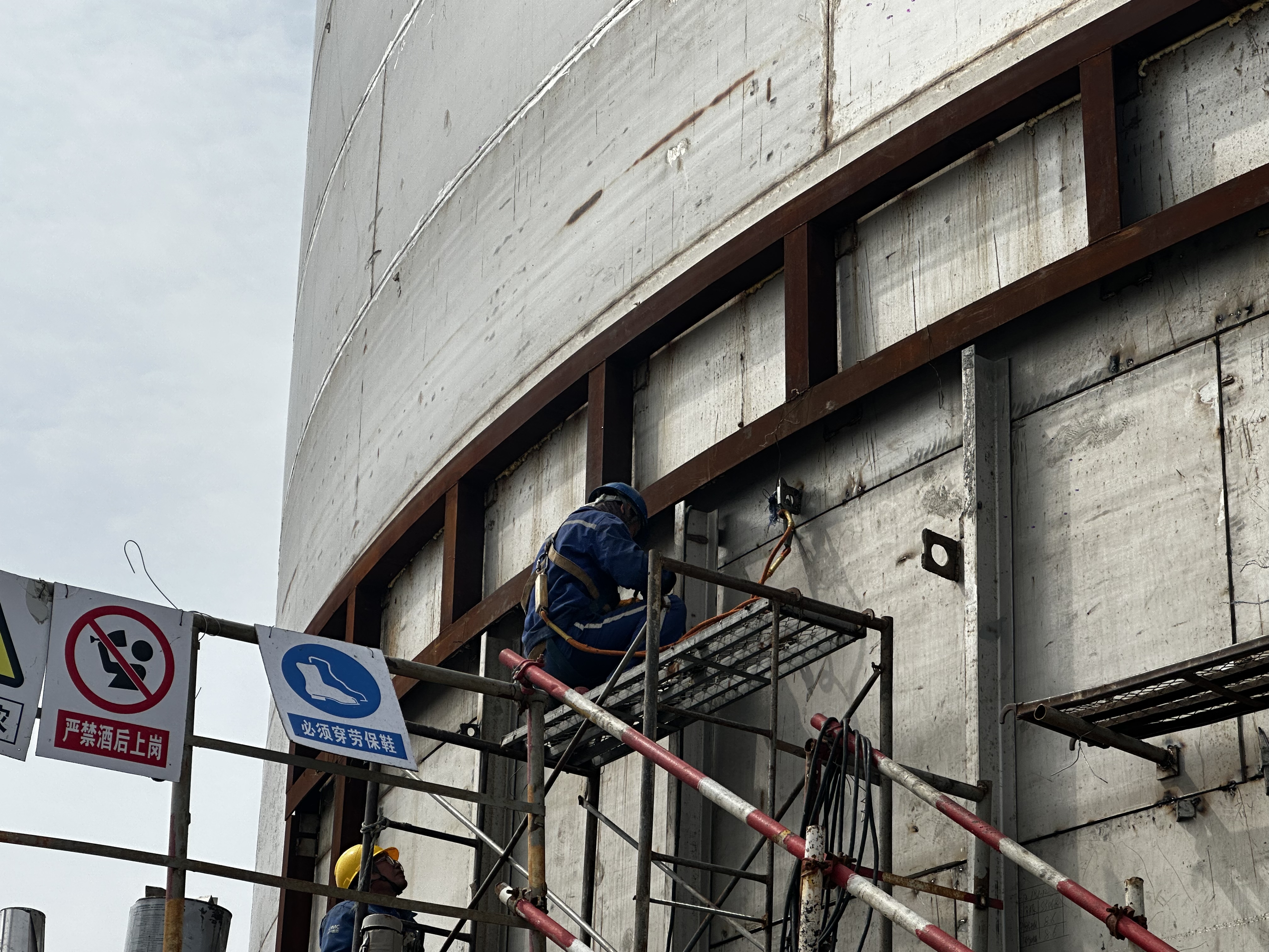 3月28日上午,隨著(zhù)外容器最后一張鋼板焊接完成,交通控股集團權屬物流集團LNG儲配站項目20000m3LNG儲罐成功封罐,儲罐安裝工作全部完成,標志著(zhù)LNG儲配站項目正式進(jìn)入了沖刺收尾階段。