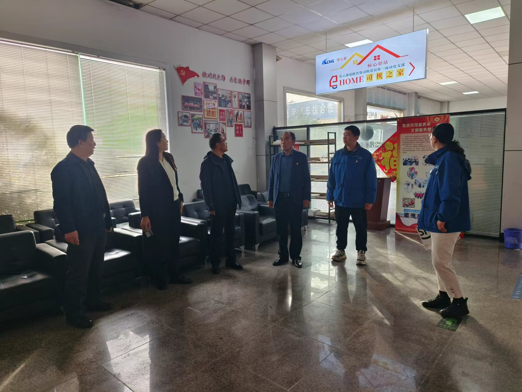 座談會(huì )結束后,雙方黨員代表共同前往“蘇心港”司機之家開(kāi)展實(shí)地參觀(guān)調研。在“蘇心港”工作人員的引導下,大家先后參觀(guān)了休息區、圖書(shū)角等功能區域,詳細了解司機之家的運營(yíng)模式、服務(wù)內容及日常接待情況。參觀(guān)過(guò)程中,雙方結合機動(dòng)車(chē)檢測行業(yè)服務(wù)特點(diǎn),就“蘇心港”后續發(fā)展提出諸多切實(shí)可行的建議,增加機動(dòng)車(chē)檢測政策咨詢(xún)服務(wù),幫助司機群體及時(shí)了解檢測新規,搭建“檢測 + 服務(wù)”聯(lián)動(dòng)平臺,為司機提供檢測預約、車(chē)輛保養等一站式服務(wù),加強“蘇心港”品牌宣傳,擴大服務(wù)覆蓋面,讓更多司機感受到行業(yè)關(guān)懷。