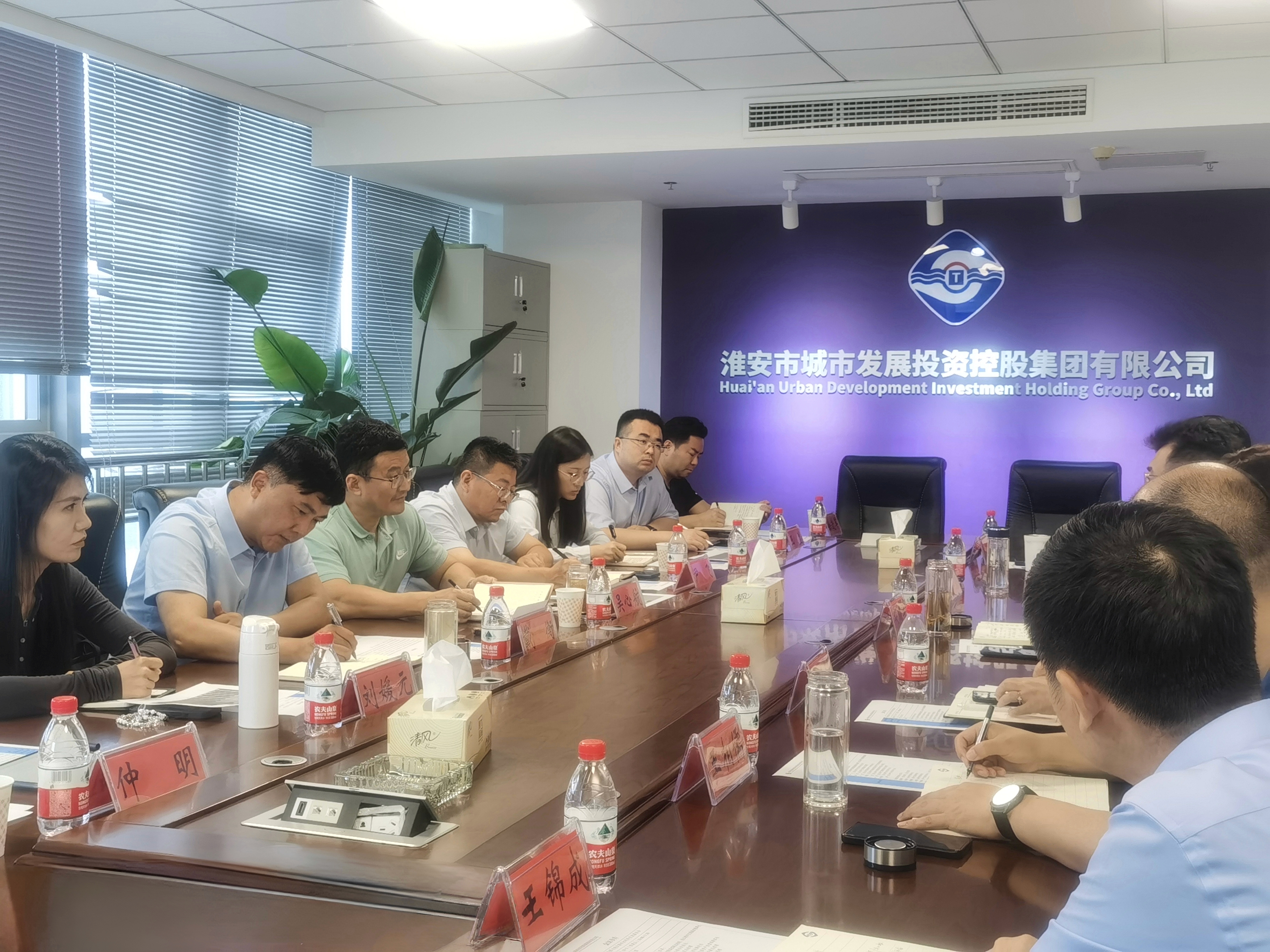 座談中,淮安市城市發(fā)展投資控股集團副總經(jīng)理張飚平詳細介紹了集團概況、產(chǎn)業(yè)布局、生產(chǎn)經(jīng)營(yíng)、水資源利用效益評估等詳細情況,雙方圍繞水利資源現狀、水利集團組建需求、水利集團組建可行性分析等方面進(jìn)行深入交流。