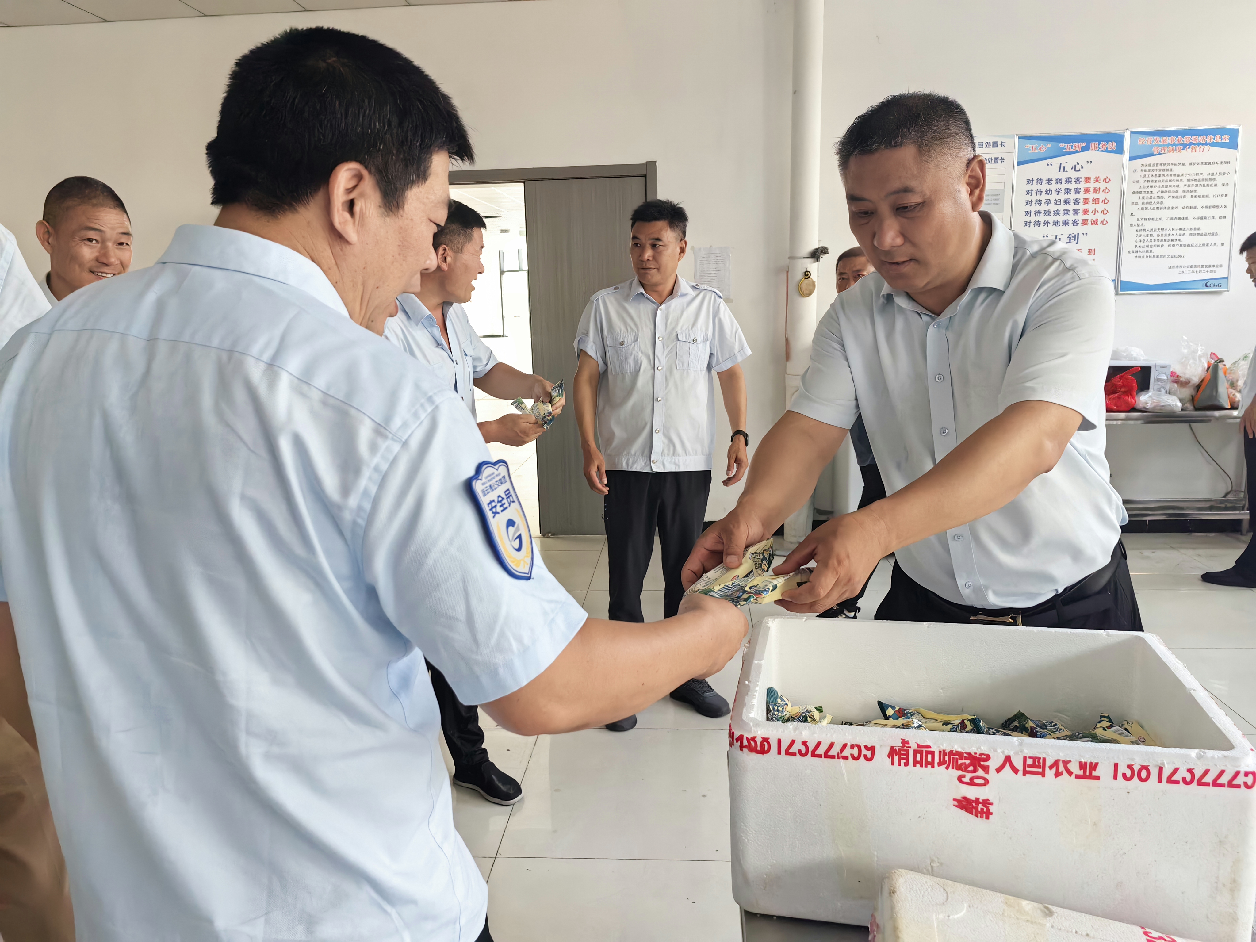 為切實(shí)保障高溫天氣下廣大一線(xiàn)職工的身體健康和安全,傳遞集團對一線(xiàn)員工的深切關(guān)懷,7月4日,公交集團權屬佳連公交公司工會(huì )迅速行動(dòng),組織開(kāi)展了高溫慰問(wèn)活動(dòng)。一根根冰涼解暑的冰棍,為駕駛員們帶來(lái)片刻的清涼舒爽;一盒盒預防中暑的藿香正氣水,為他們的健康增添一份保障。班子成員在現場(chǎng)親手將慰問(wèn)品送到駕駛員手中,并詳細詢(xún)問(wèn)了他們的工作狀況和身體情況。